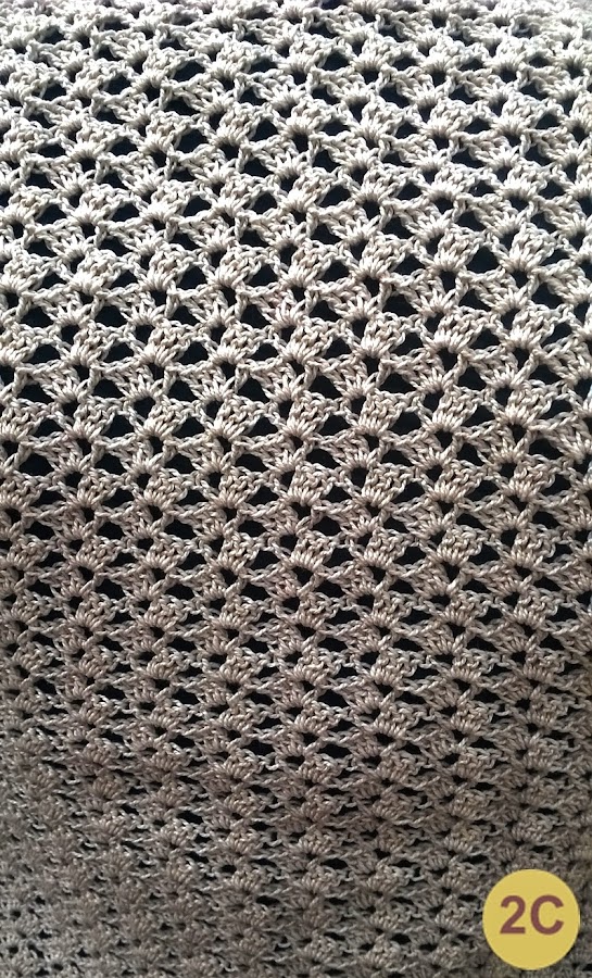 El punto son abanicos rotos. Para hacerlo sólo tenéis que saber hacer puntos altos, así que en realidad no es complicado, sólo laborioso. Me gustaría probar a hacer otro pero con lana gruesa, seguro que es más rápido de hacer y para el invierno viene genial.