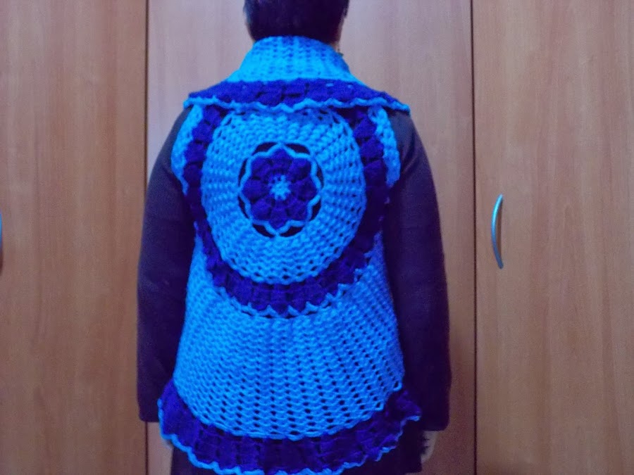 Bien después de 20 días de arduo trabajo,por fin he terminado mi chaleco redondo,que tantas ganas tenía. La verdad es que he tardado poco, es fácil de hacer y al ir en redondo de una sola vez se hace delanteros y espalda y es mas cómodo así. Lo recomiendo.