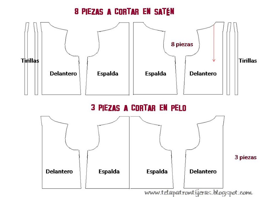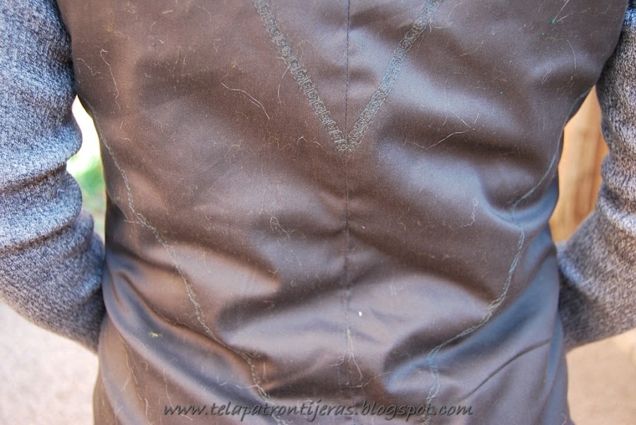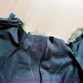 La espalda se corta en una sola pieza en el pelo y en dos en el satén porque queda más bonito en la espalda con la cremallera en el centro.