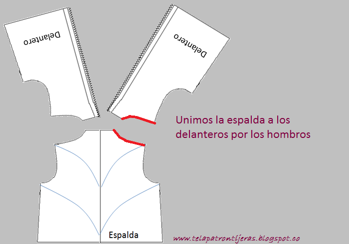 Montamos las tirillas a cada delantero y unimos por los hombros cada delantero a la espalda.