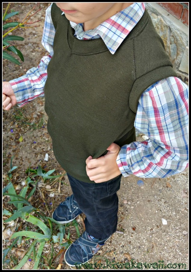 El mío es de punto tricot verde. Lo mejor es que sobre cualquier camisa o camiseta lisa, le da un toque serio, perfecto para ocasiones especiales. Lo malo, que el niño se ha quejado porque "no tiene foto"; sólo quiere llevar ropa con dibujos o estampados, jajaja! Le he intentado convencer de que tiene un dinosaurio muy chulo, pero dice que es demasiado pequeñito (la etiqueta handmade).