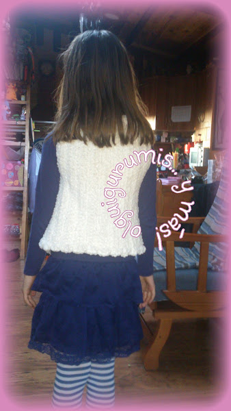 Ayer lo terminé y hoy ya se lo ha llevado puesto al cole. Ahora tengo un problema... Yeray también quiere un chaleco, así que a ver cómo lo hago para sacar una versión masculina... Se aceptan sugerencias!!!