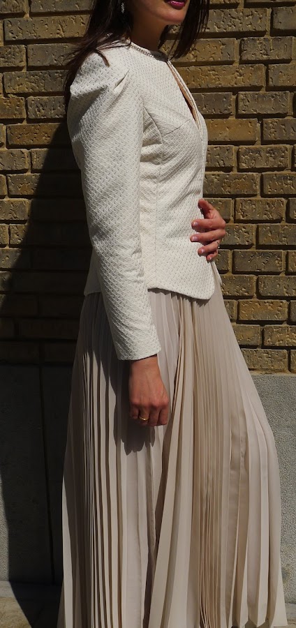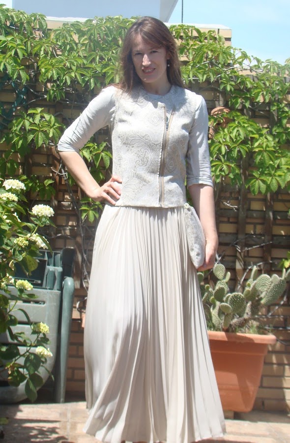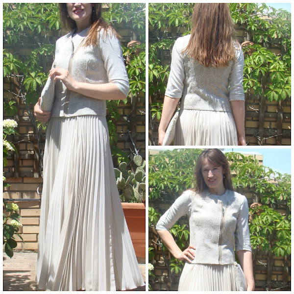 Ya para otra celebración, la llevé con chaqueta. Pero esta vez, me apetecía darle un aire más ligero. Así, con poco más que esta nueva prenda y su inseparable bolso, tuve conjunto DIY para la ocasión.