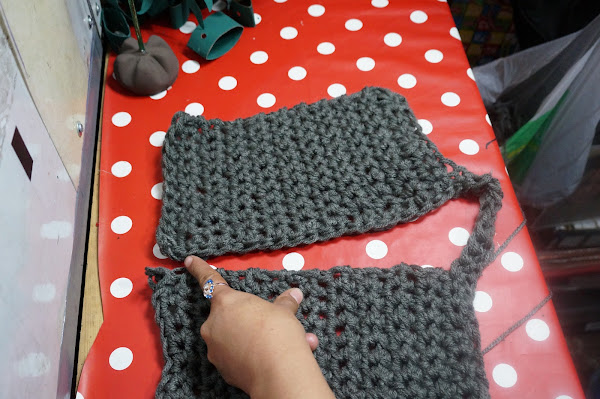 Cerraremos, uniendo estas dos partes como lo muestro en la imagen, ahí comenzare a tejer del otro lado para unir, nota como ya tenemos formado la parte del cuello de nuestro chaleco. Ahora teje hacia arriba donde estés cerrando y quedarás en la parte de arriba, teje toda la parte de arriba haciendo 20 vueltas para completar la parte de la espalda.
