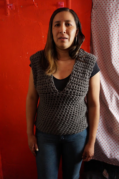 Daremos una vuelta en todo el contorno y uniremos en el otro costado, para así, tener la parte de arriba del chaleco, ahora unicamente nos queda tejer varias vueltas para completar el chaleco, yo hice 30 vueltas, pero si lo quieres más largo aumenta el número de vueltas hasta donde desees.