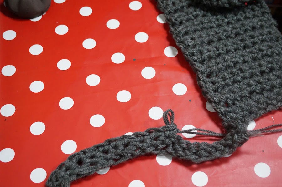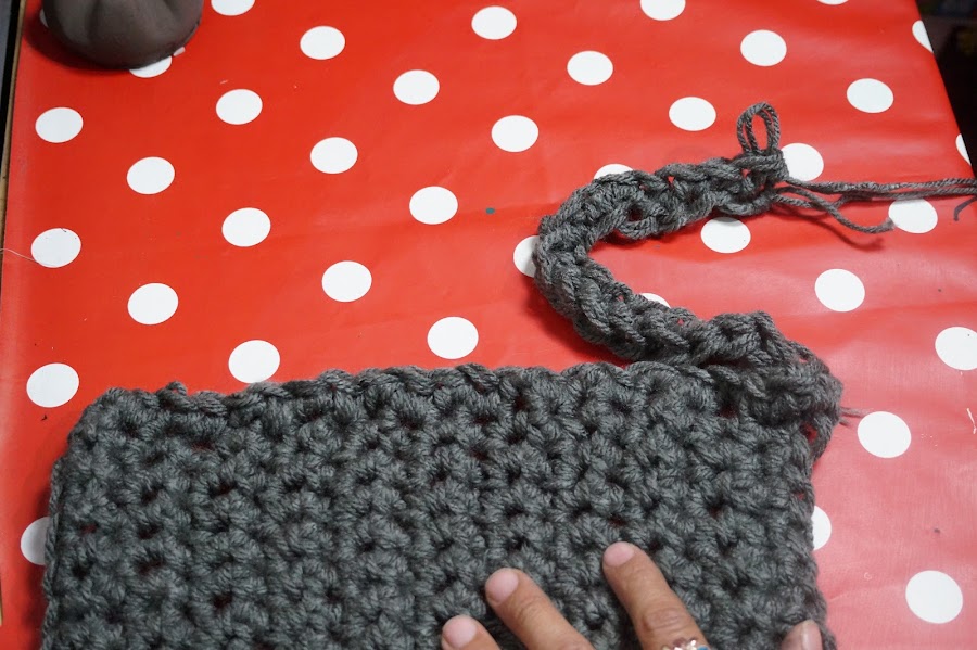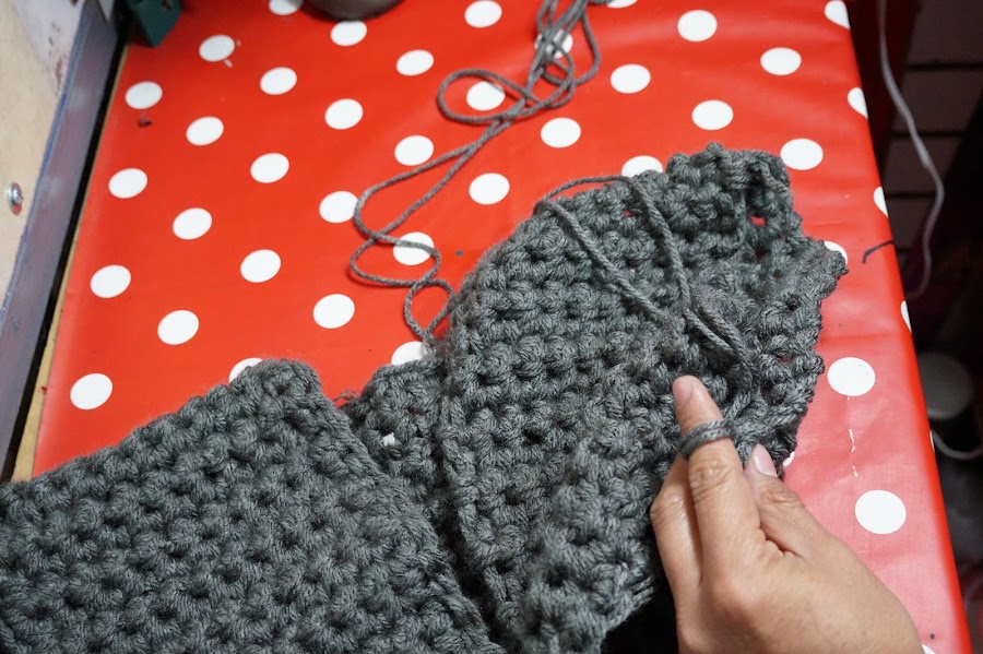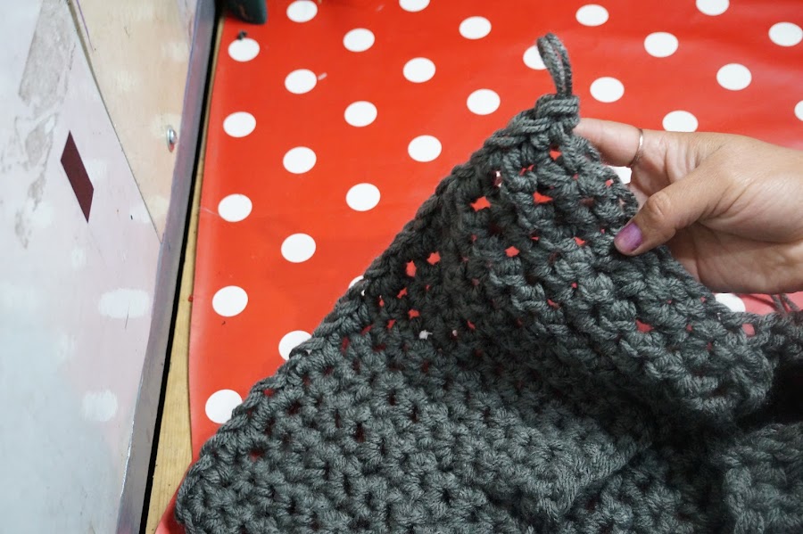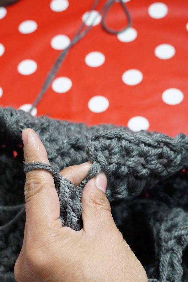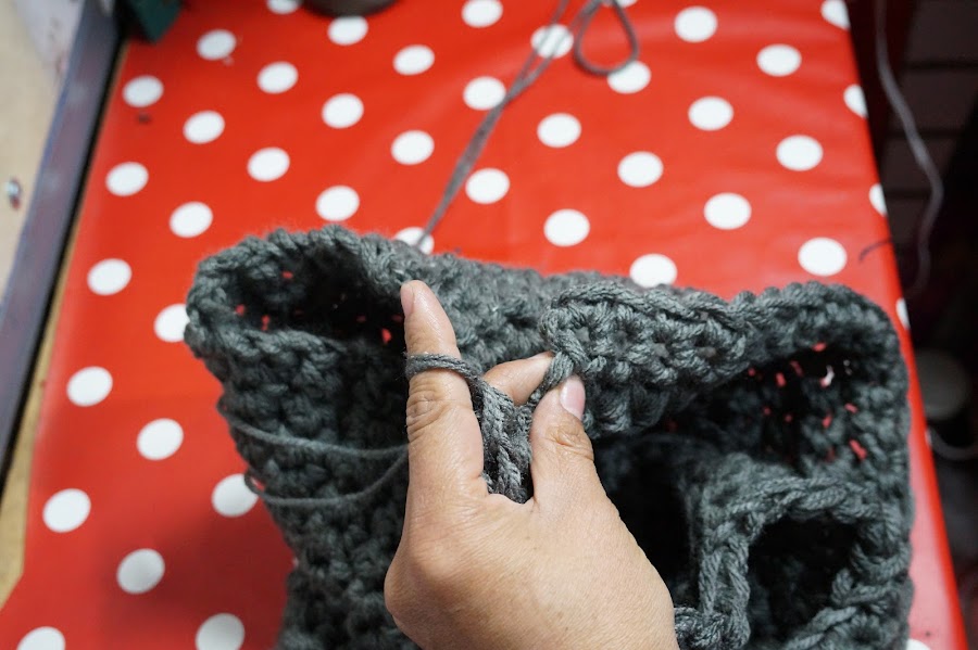 Ahora solo cierra, amarrando el hilo y escondiéndolo en el tejido.