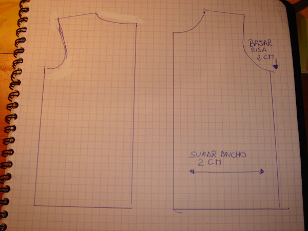 Para empezar haremos un patron base de niño delantero y trasero a las sisas le bajaremos 2 cm para dar amplitud y que no nos quede justa cunado lleven un jersey o una sudadera debajo del chaleco, tambien le sumaremos 2 cm al ancho del cuerpo.