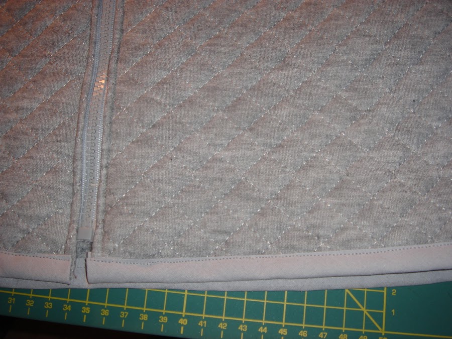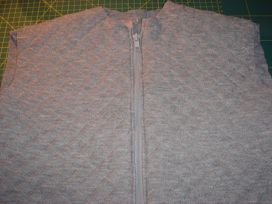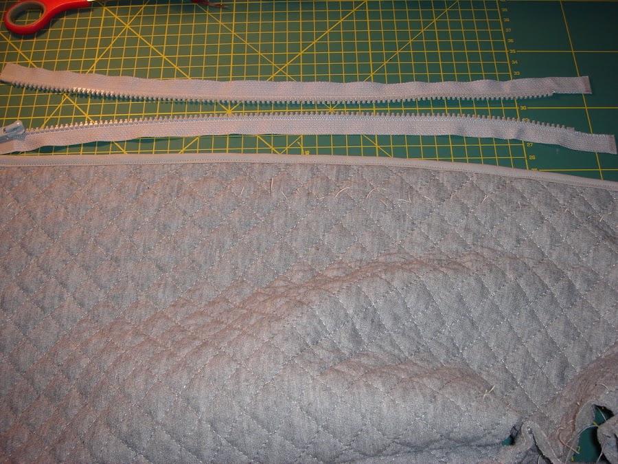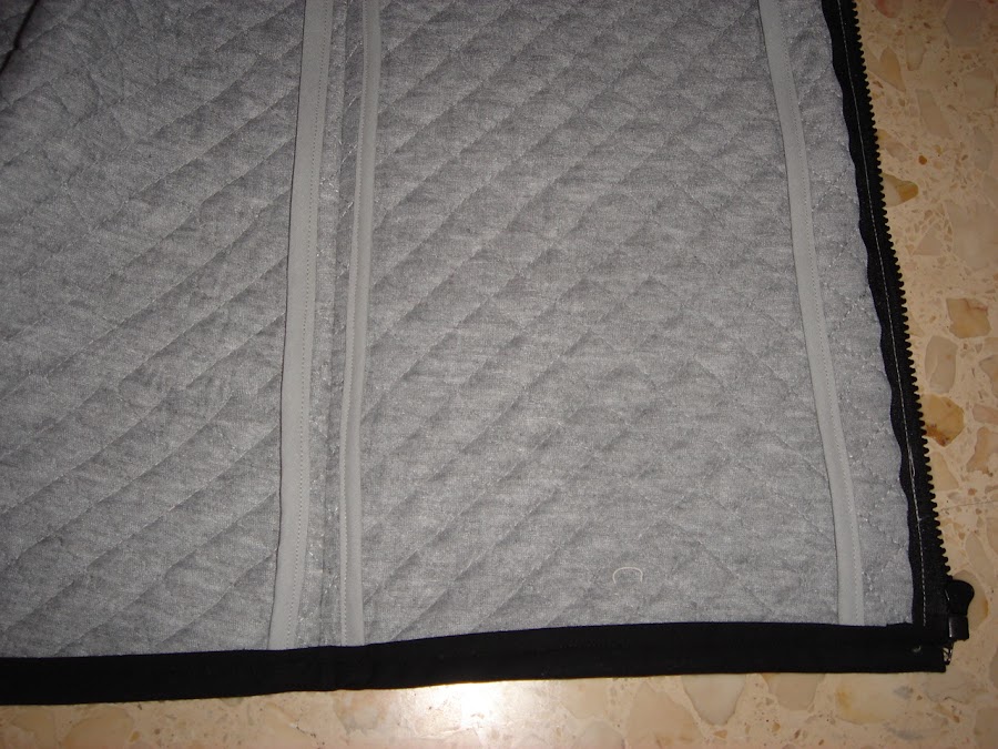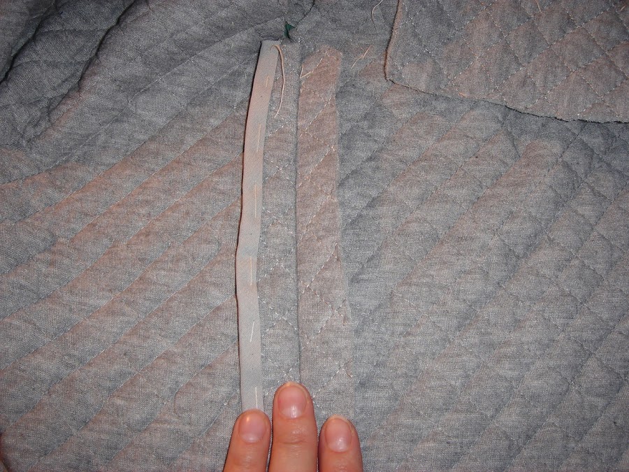 Para hacer estos chaleco necesitaremos tela acolchada, una crenmallera separable, cinta al bies estrecha y ancha del mismo tono he hilo del mismo color.