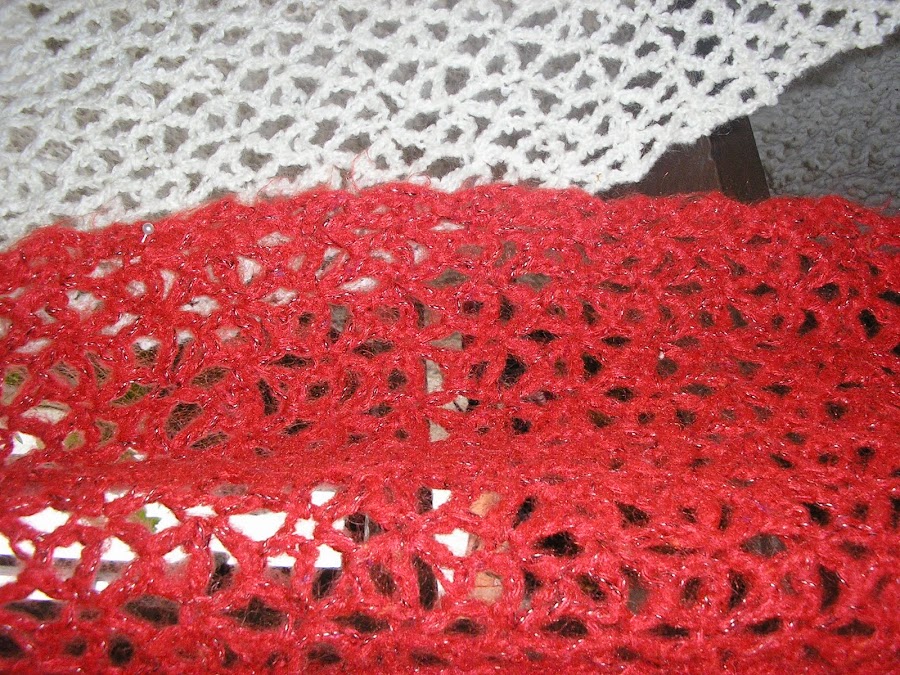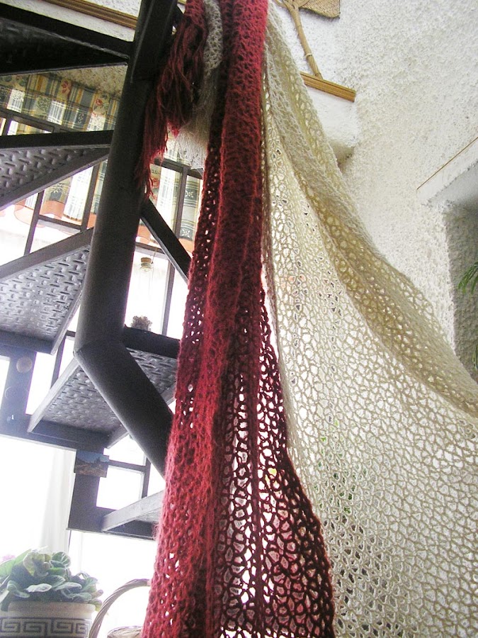 Y aquí mis chales dos por falta de uno, están hechos a ganchillo en punto cruzado.