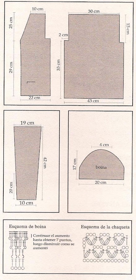Os dejo los patrones y el esquema de la chaqueta y de la gorra.