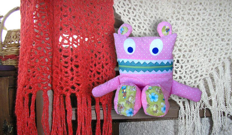 Por aquello de la magia del photoshop me he puesto al monstruito sentado entre la" flecada" de los chales.