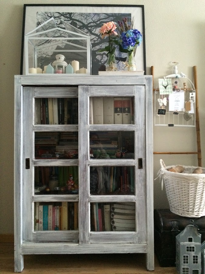 - Para aplicar la chalk paint yo uso dos técnicas. En el video habréis visto una parte de la estantería llena de marcas blancas que después voy estirando. Esta es una técnica.