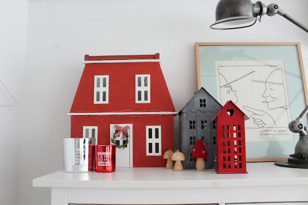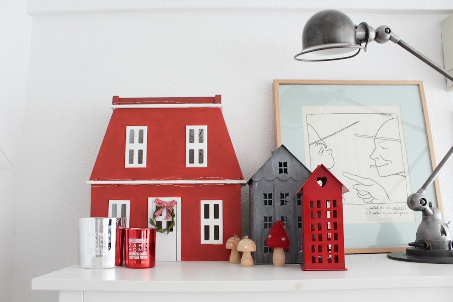 Así que os cuento, encontré esta casita de madera en las rebajas de Zara Home (si queréis encontrar una parecida suelen tener una similar cada temporada y también hay una parecida en Ikea)y no pude resistirme. Tan mona ella con sus puertecitas y ventanas que la primera idea fue hacer una casita de muñecas con muebles modernos como esas ideales que se ven en Pinterest, con sus tipis, sus sillas de diseño, pero la realidad es que no me da la vida ni la imaginación... y ha acabado de casita de Navidad.