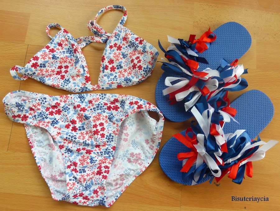 Después iremos cortando cintas de raso del color que mas os guste o que vaya a juego con vuestro traje de baño.