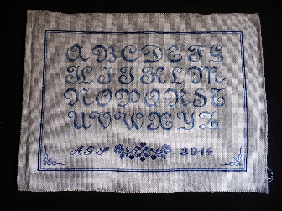 El abecedario está sacado de un cuadernillo antiguo que me regalaron...Lo siguiente, buscar un marco y plancharlo para rematar el trabajo.