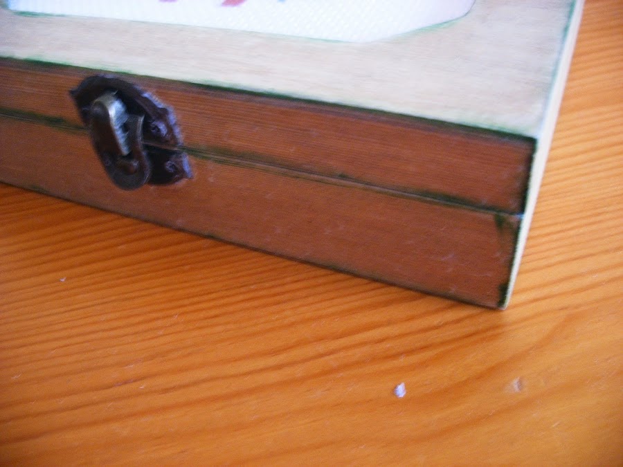 Una caja, envejecida con betún de Judea y,bajo el cristal, un motivo navideño a punto de cruz...