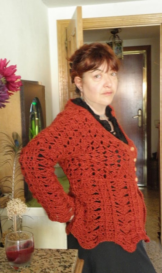 Os podría contar que he estado en ...pero no, nos quedamos en casa tan ricamente( esto es un consuelo de pobres). pero eso sí he tenido tiempo para caer en la trampa que nos brindó Romi de Dame la lata y visitar la página de Raverly. Entré es estado de sock, fue como dar un caramelo a un niño y claro de todo lo visto algo tenía que hacer o reventaba y elegí esta chaqueta. ( admirar mi seriedad en las fotos, si me río malo y si me pongo seria me pongo muy seria).