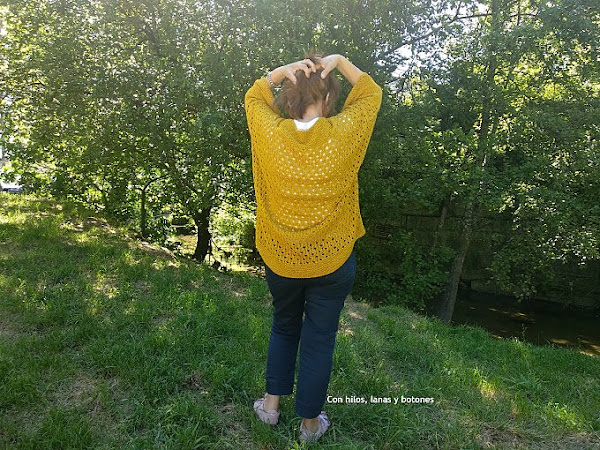 Porque este diseño lo veía claramente para mi madre, estaba convencida de que le iba a quedar genial y le iba a gustar. Y luego me enseñó los ovillos. Y vi el color. Y me enamoré del color. ¡Qué preciosidad de mostaza! A ver, que yo no soy imparcial en este punto porque siento debilidad por los mostazas en todas sus variedades, lo sé, pero es que de verdad que el color es precioso. Las fotos no le hacen justicia y mira que se ve bonito en las fotos, pero es que al natural aun es mejor.