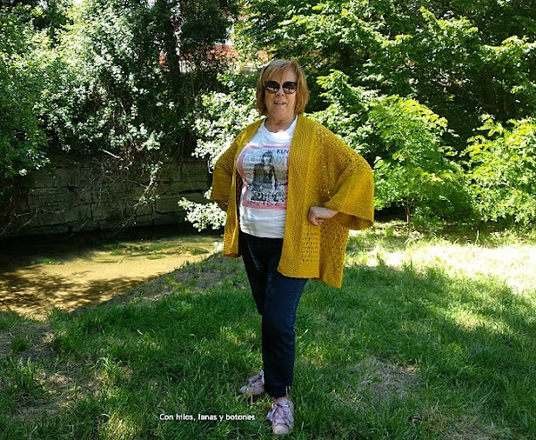 Tengo la suerte de estar entre sus testers de cabecera y cuando tiene diseño nuevo ahí estoy con las agujas preparadas. Cuando me habló de esta chaqueta ni pestañeé antes de decir que sí. Claro que sí, cómo no la iba a hacer si es una preciosidad. Creo que lo primero que salió de mi boca fue ¿qué talla necesitas? y ¿llego para el día de la madre?