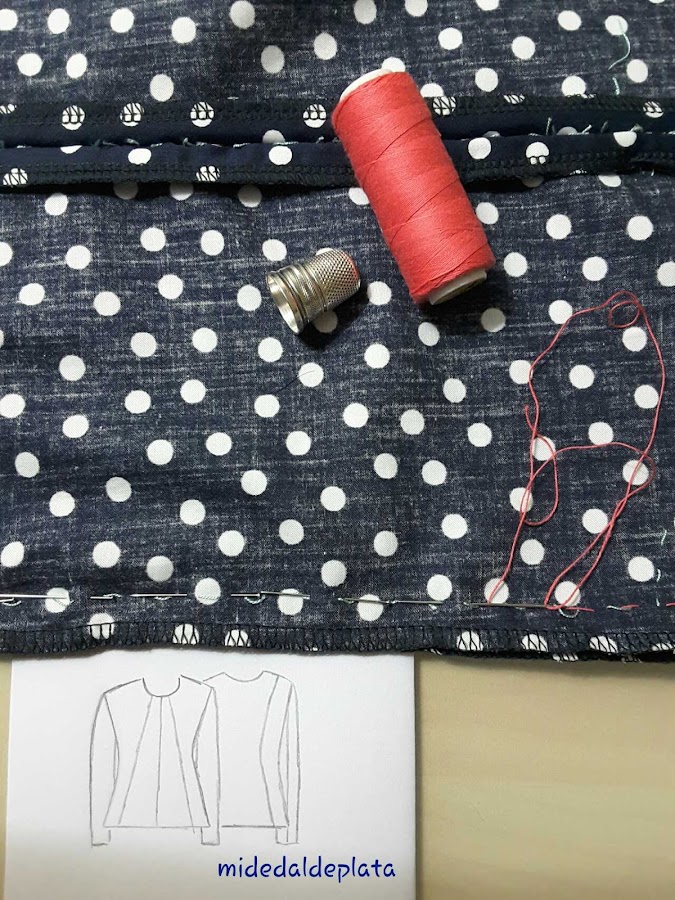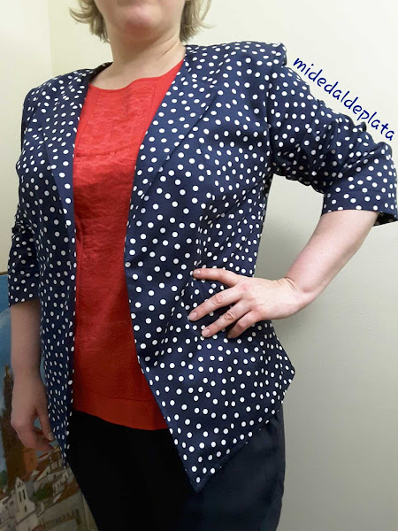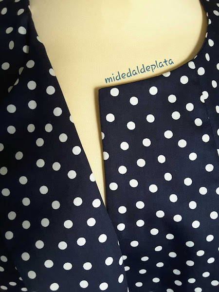 Cuando ví esta tela azul oscuro de lunares salteados, en seguida imaginé la chaqueta que iba a hacer con ella.