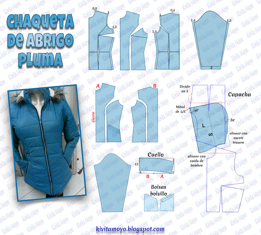 En el patron del torso mas la continuacion hasta la segunda cadera en el vestido, trazar esta chaqueta entallada.
