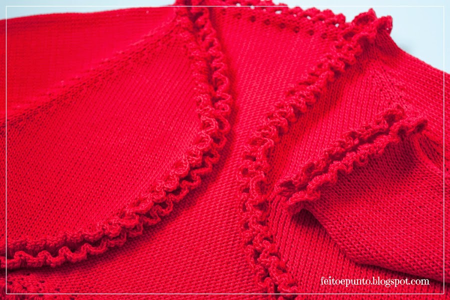 Por cierto, está tejida a máquina, con algodón Cable 5 de Oso Blanco, y con dos vueltas del volantito de ganchillo, que queda chulísimo!!