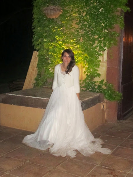 Vista por la parte de atras parece que ya no queda tan separada. Es el modelo del vestido, cuanto más larga es, más se apoya en el vestido.