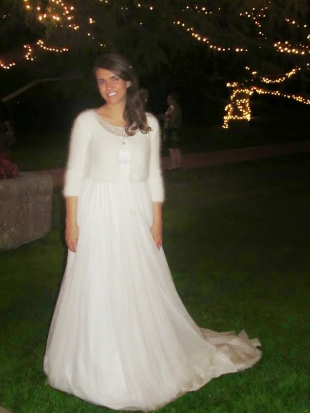 Esta tiene menos escote, eso depende del gusto de la novia y de la forma del vestido. Pero también queda bonita un poco más cerrada.