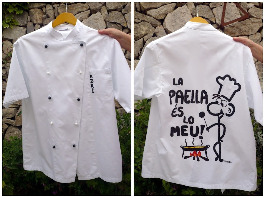 Hoy más que manualidad es una idea. No sé si os lo habré contado pero en mi casa no soy la única cocinillas, de echo lo de cocinar lo llevo en las venas porque a toda la familia nos encanta. Esta chaqueta se la regalé a mi hermano que le encanta hacer paellas para nosotros y sobretodo para sus amigos. Pone en valenciano "La paella es lo mío".
