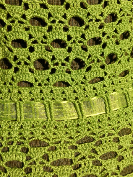 El hilo que he utilizado es el Catania de Schachenmayr. Aunque me ha gustado mucho trabajar con este hilo, el tacto y el color que tiene. No sé si lo voy a utilizar de nuevo en calados tan grandes. Al ser de algodón pesa mucho y tiende a ceder a lo alto. Cosa que no me pasó con el jersey que me hice de inverno que era de lana y alpaca. Supongo que también será cuestión de encontrar el diseño y el punto adecuado.