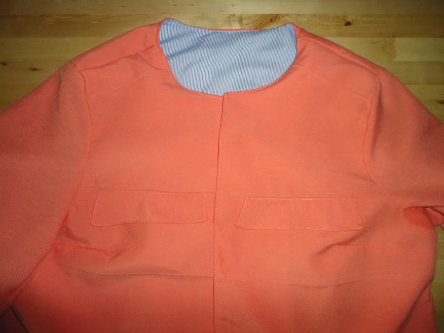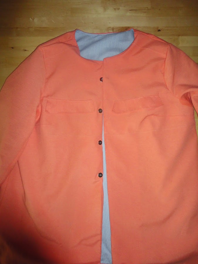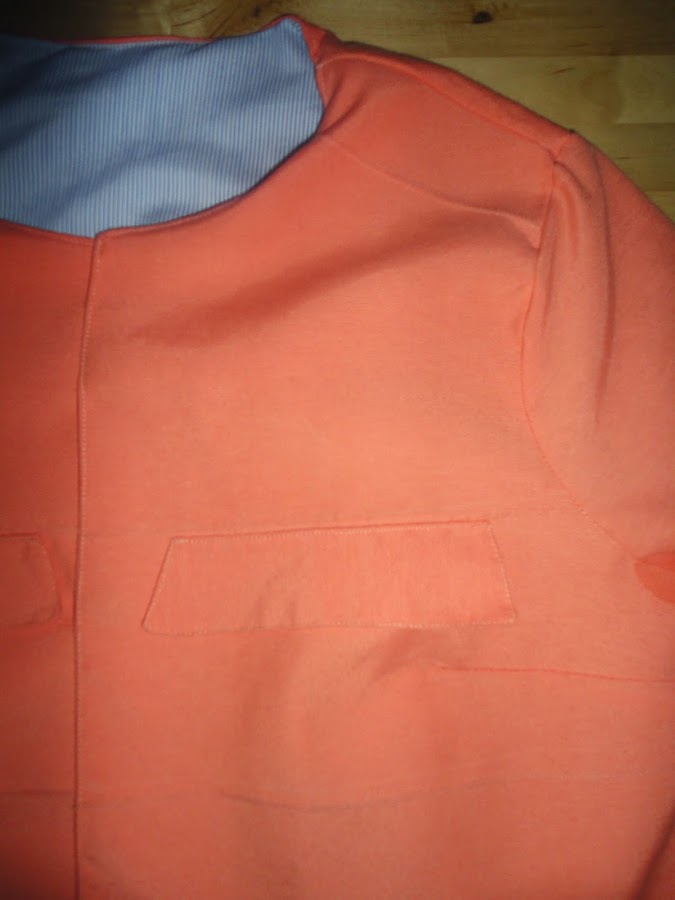Añadí costuras horizontales en la zona del pecho y de los hombros, unas solapas para falsos bolsillos y puse botones de imán para que al cerrar la chaqueta queden ocultos.