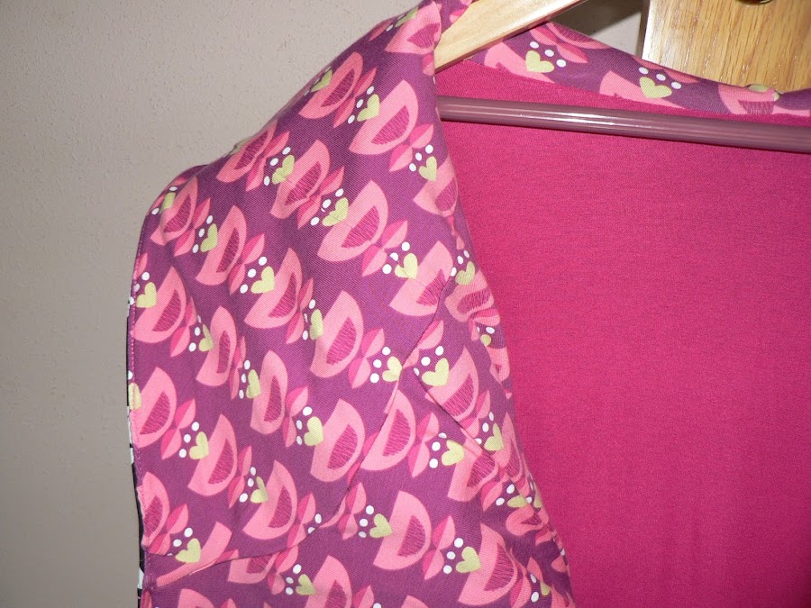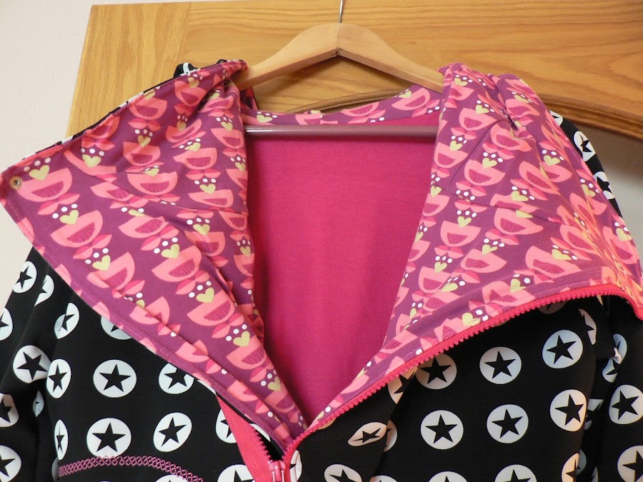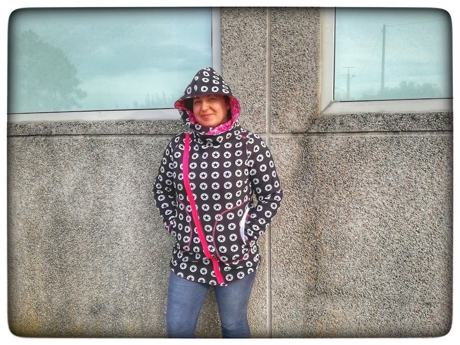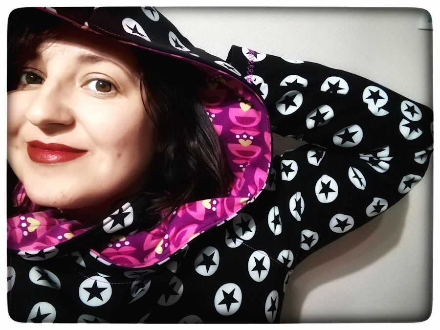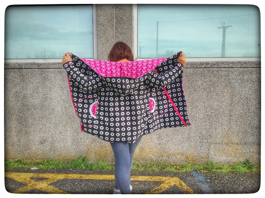 Y digo en serio lo de que no me llegaba la tela. De hecho no me llegaba ni para la capucha. Así que tuve que coser dos piezas donde sólo iba una tratando de casar el dibujo para que no se note la costura. Cómo lo veis?