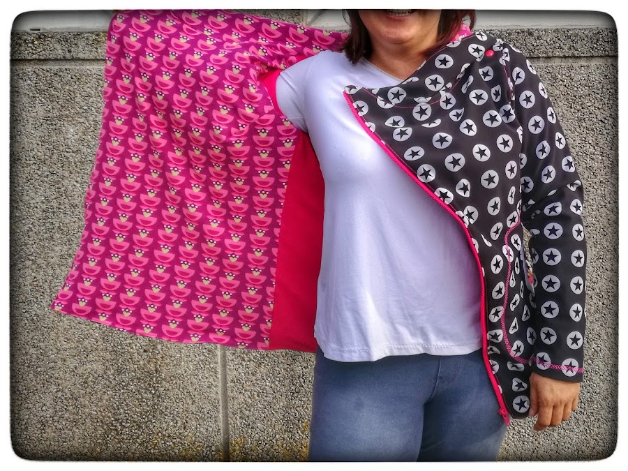 Hace mese que me compré unos metros de softshell. Me parecía una tela novedosa y sentí las ganas de probarla al instante. Si embargo luego tardé mucho tiempo en sacarla del cajón. Primero empecé a hacerle una chaqueta a mi chico, que ahí la está esperando un ataque de inspiración. Luego hice un bolso que ya os enseñaré y aunque tenía ganas de hacer una chaqueta para mí, no acababa de hacerla.