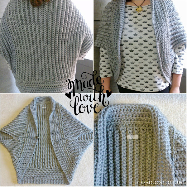 Muchas me habéis preguntado como la he hecho , hace tiempo ví este tipo de chaquetas que la verdad son muy fáciles de hacer y muy resultonas y además para orientarme un poco ví el video de Bluü que explica muy bien como armarla.