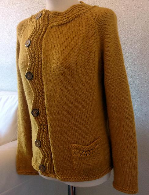 En el patrón original, va la chaqueta en punto revés, pero aunque empecé bien, no me quedo muy parejo por ese lado el punto, así que desmonté el cuello y lo monté por el lado derecho