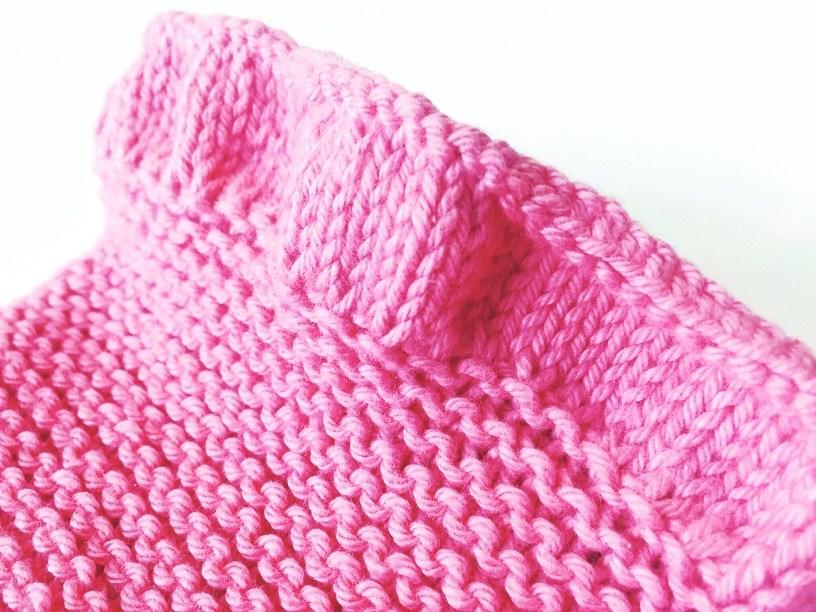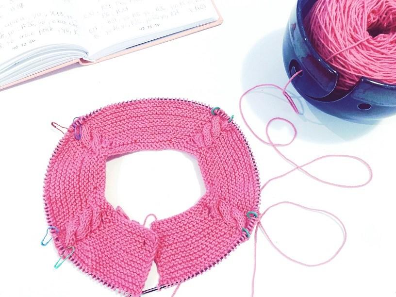 En el canesú, para formar el raglán, vamos a hacer aumentos haciendo una lazada o hebra. Estas hebras, en la pasada siguiente, siempre se tejerán por detrás para que no se nos formen agujeros.
