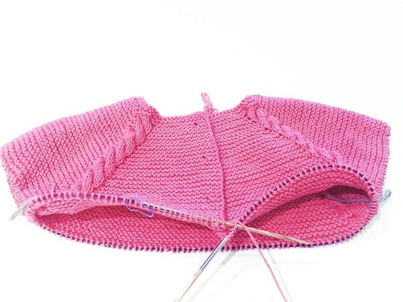 Yo he tejido la manga con una aguja circular, pero puedes tejerlas de ida y vuelta y luego coser el perfil.