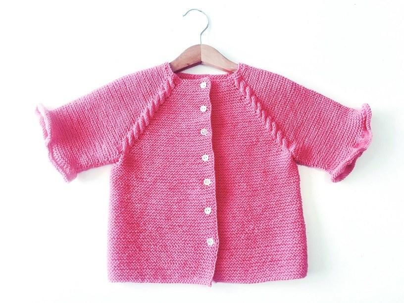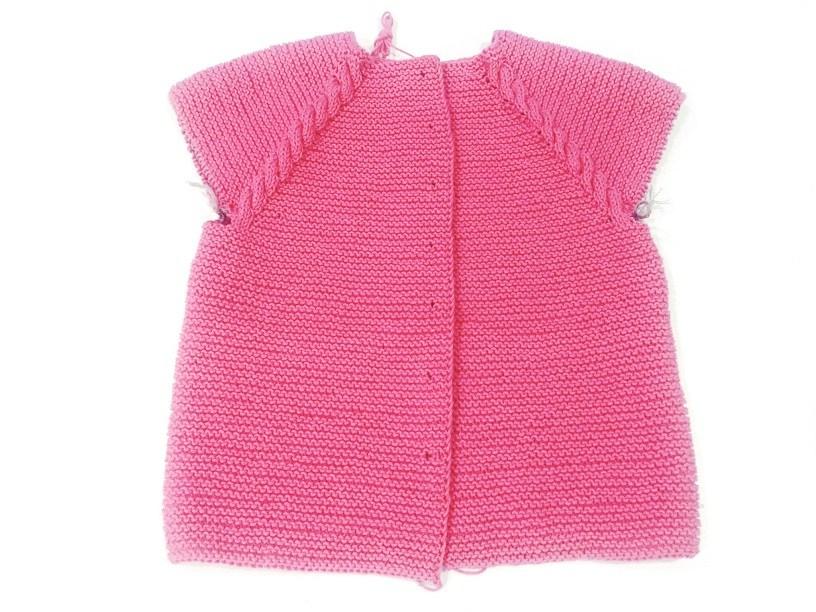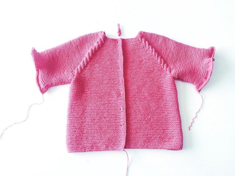 Las mangas de la chaqueta las he tejido con aguja circular, pero puedes tejerlas en recto y coser al final el perfil.