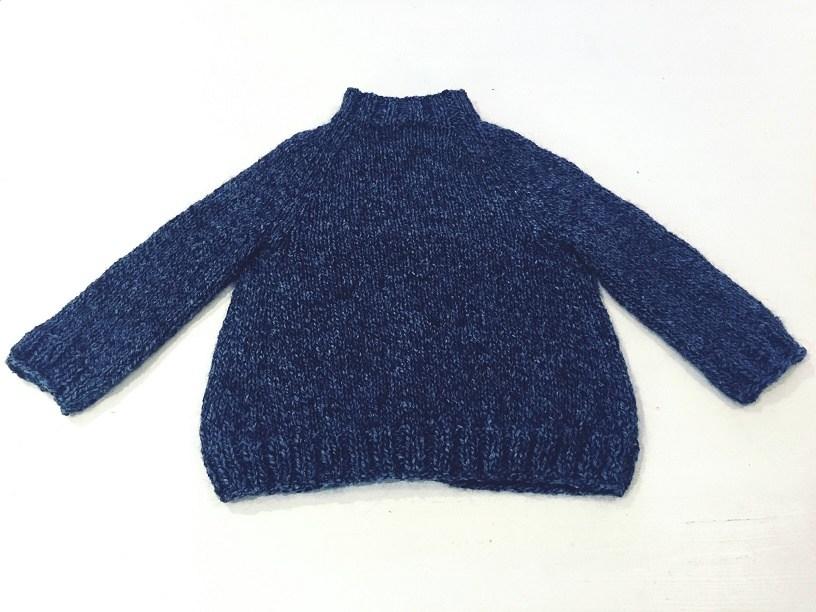 Una vez tejidas las dos mangas, recuperamos la pieza del cuerpo tejida y unimos las tres piezas.