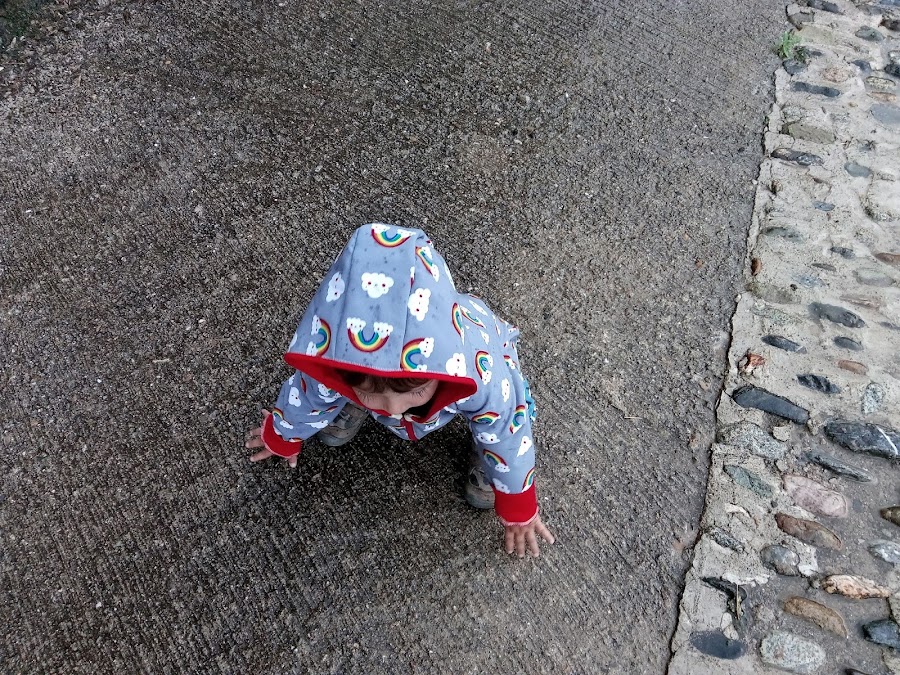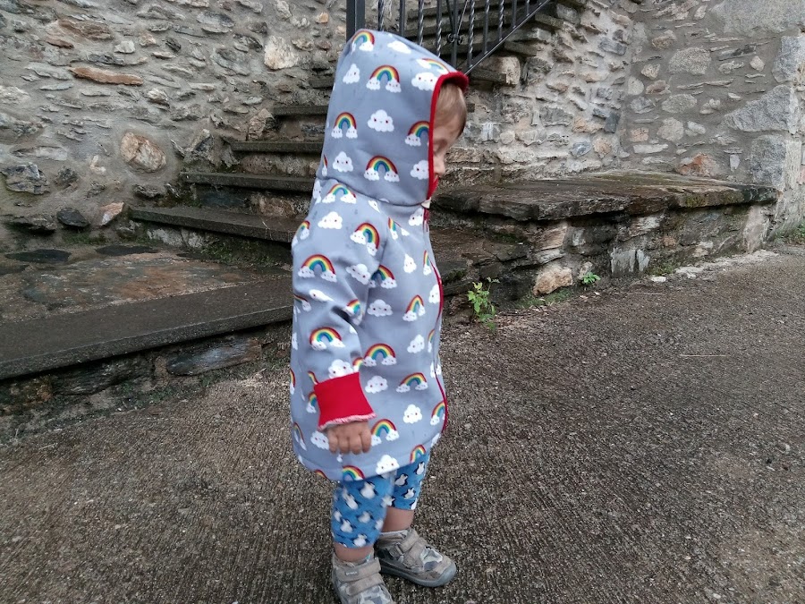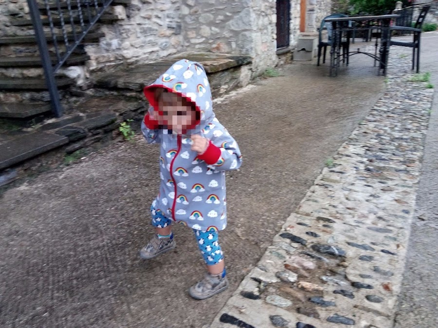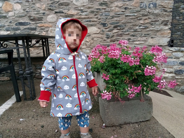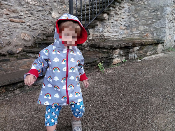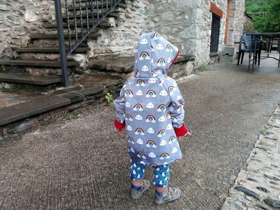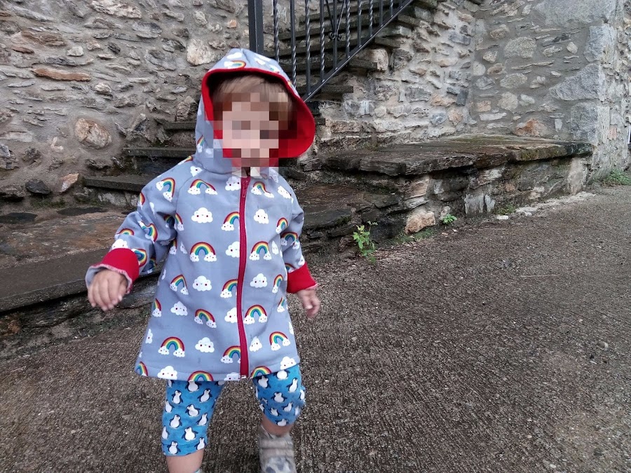 La chaqueta la estrenamos este verano en la montaña, un dia lluvioso. Íbamos todos preparados con nuestras chaquetitas de sofshell. Si no las habéis visto, la del grande AQUÍ, la mía AQUI. Todas muy discretitas ya veréis jeje