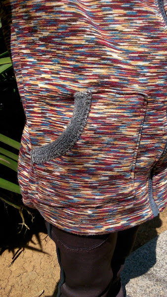Los bolsillos sin complicación, en lugar de ribetear le di la vuelta (derecho con derecho) a la tela y el efecto del pelo interior queda la mar de mono... Son bolsillos de plastón, así que son bastante fáciles de hacer. De hecho toda la sudadera en sí es fácil, porque no lleva forro, bolsillos fáciles, ni puños ni bajos.