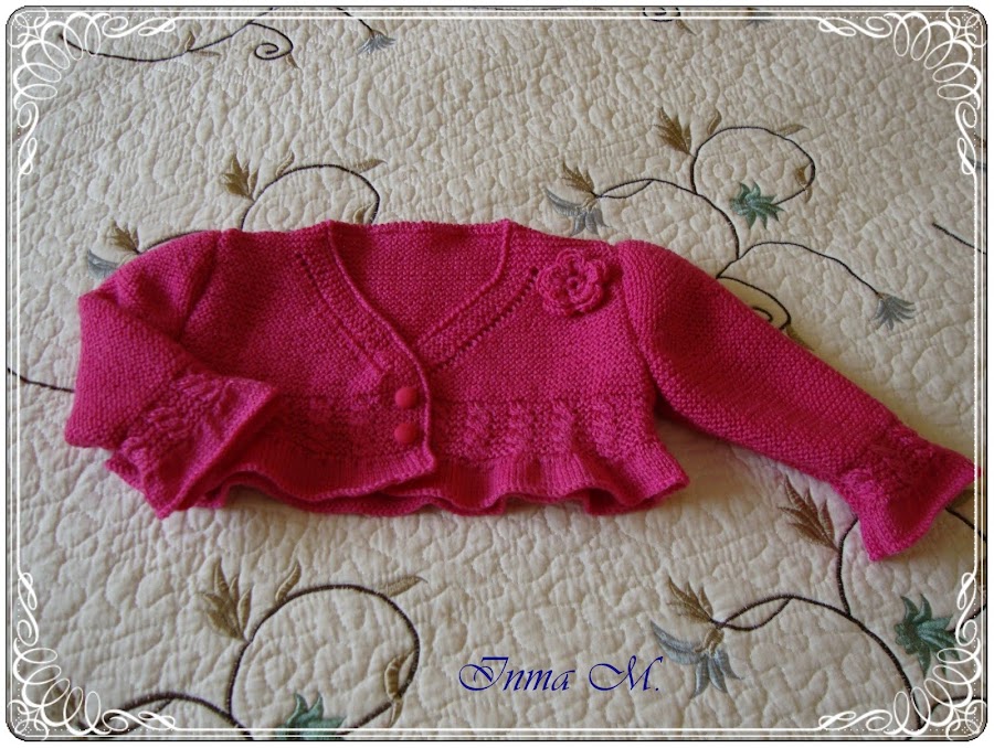 Aunque con el calor que estamos pasando estos días pueda parecer un crimen sacar una chaqueta... la verdad es que aquí ni en pleno julio nos podemos olvidar de ella!! Por las noches refresca y es necesaria, y eso cuando tenemos la suerte de tener un día bueno (como hoy). Esta chaquetita se la hice a mi sobrina Carmen para lucir el fin de semana pasado en las fiestas del pueblo. Como veis no arries ...