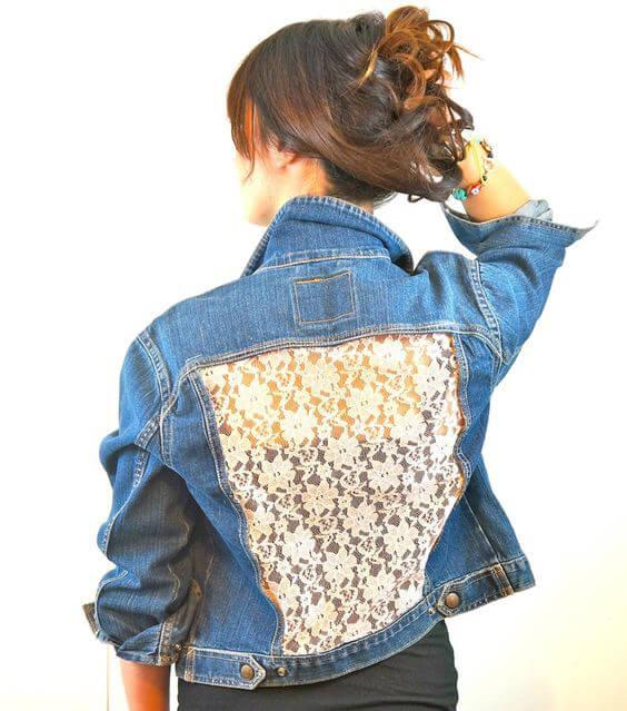 Aplicar tejidos como crochet, guipur, encaje u otras telas semitransparentes puede aportarte un look más sexy y desenfadado. Para este tipo de customización, es bueno utilizar las zonas delimitadas por las propias costuras la chaqueta. Existen dos opciones, podéis quitar el tejido vaquero de estas zonas para sustituirlo por crochet, por ejemplo, o bien, superponerlo. Todo depende de si queréis conseguir zonas con transparencias.