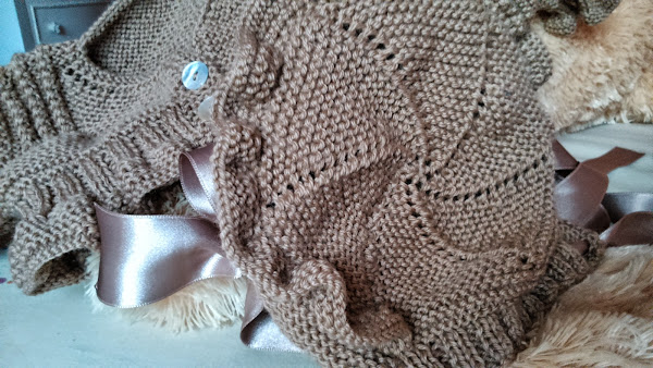 una chaquetita más...de lana merino ....muy calentita para este frío invierno....y con la capotita ...es muy sencilla ...sólo unas trenzas adornan el delantero....la capotita lleva un volantito en la parte de atrás ....