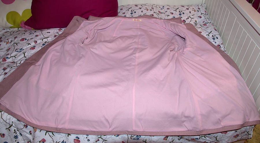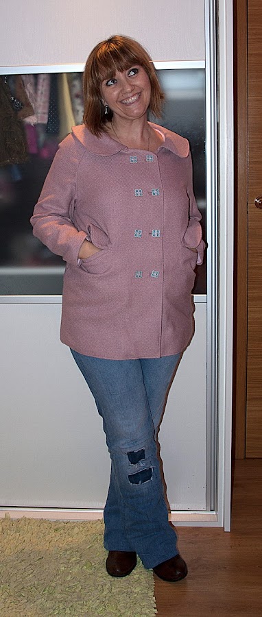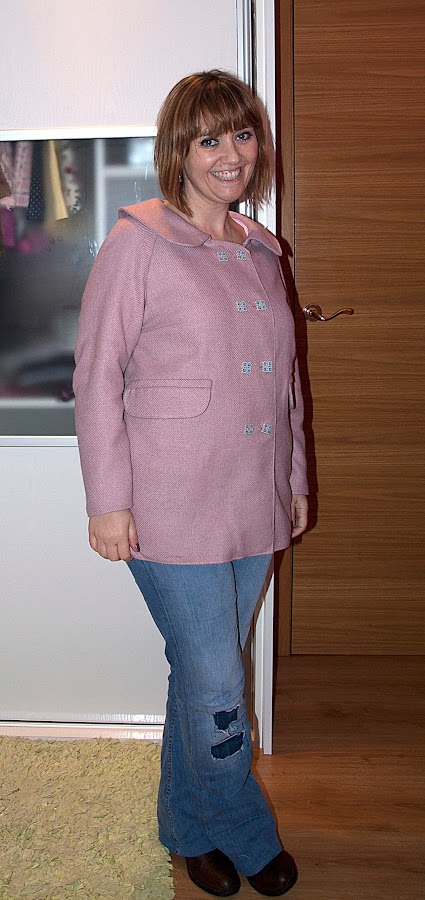 En esta ocasión he practicado el patrón de la manga raglán que nunca había hecho nada con esa manga ni sacado ese patrón, los ojales de tela, y los bolsillos con tapeta. He aprendido que antes de cortar el cuello hay que sacarlo en papel y probarlo mil veces para no tener que cortarlo dos veces o tres... que para que las vistas queden perfectas y pulidas la entretela es esencial y que para hacer un abrigo hay que sumar a las medidas de contorno de pecho, cintura y cadera un mínimo de 4 cm para que de mas holgura al meter ropa debajo, la botonadura es doble así que también había que duplicar la media de pase o cruce, así que al margen de mis errores el aprendizaje a sido muy óptimo.