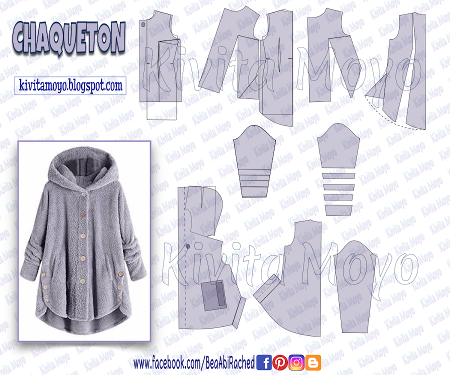 Para diseñar la capucha colocar el torso de la trasera invertida como se ve en el dibujo y continuar con el cruce del centro del cuerpo.