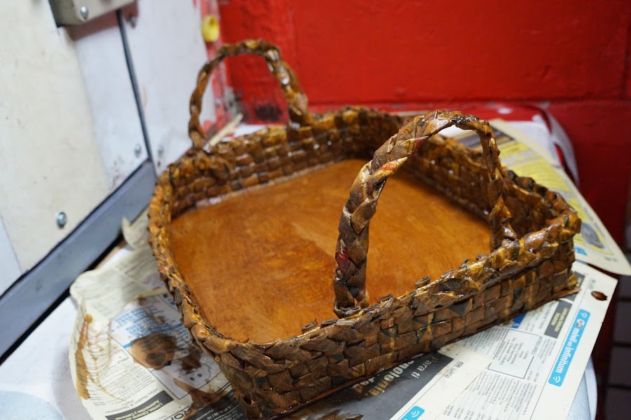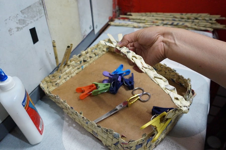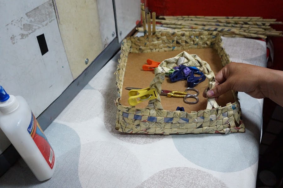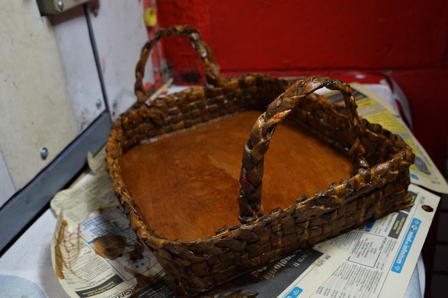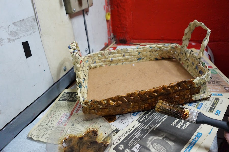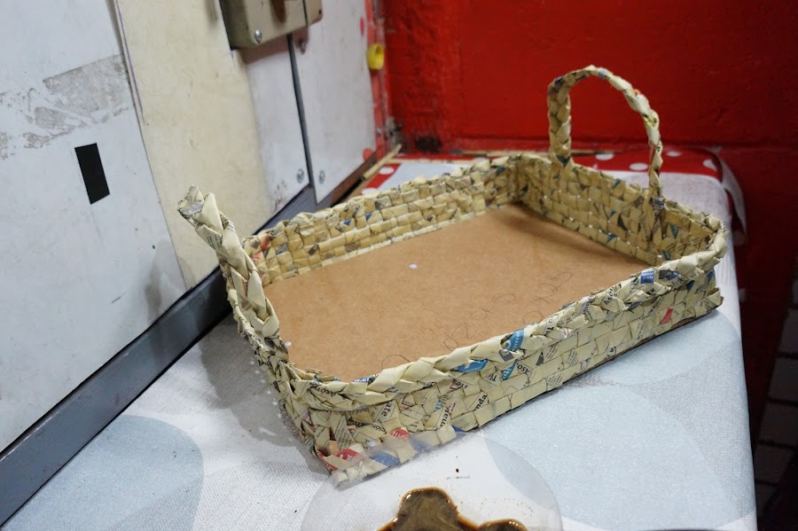 Puedes ver el vídeo de esta linda charola hecha con periódico y cartón aquí