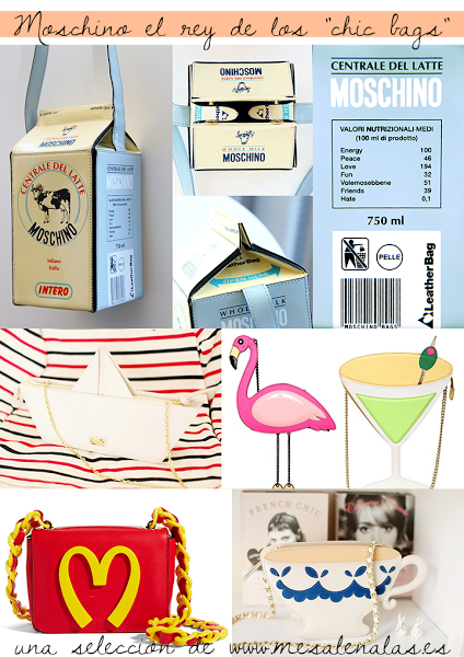 Podemos ver como Moschino nos vende cartones de leche como bolsos y no solo eso, nos los vende a precio de leche de Kobe. Y eso amigos dicen que se llama "MODA" y yo digo que se llama "ESNOBISMO".