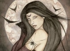 Precioso gráfico de una chica con una araña y muerciélagos...
