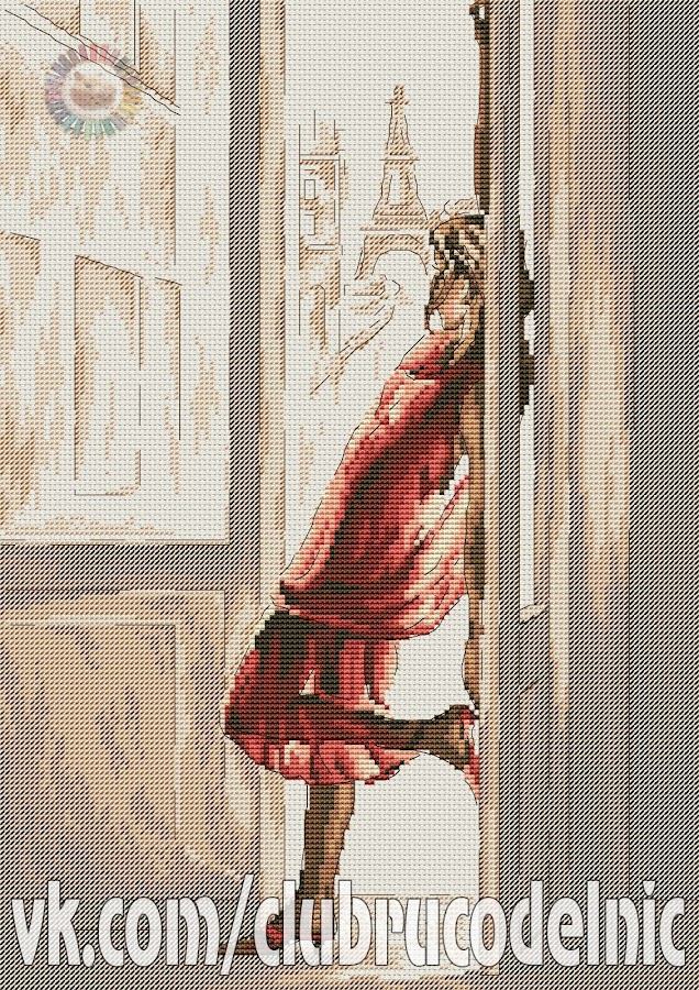 Precioso gráfico de una chica en una ventana con vistas a París...